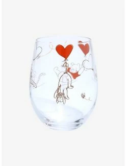 Bring the Hundred Acre Wood vibes to your next toast with this Winnie the Pooh-inspired wine glass! Pooh Bear, Tigger, Piglet, and Eeyore are hanging from heart-shaped balloons, ready to share the love with your Disney drinkware collection.