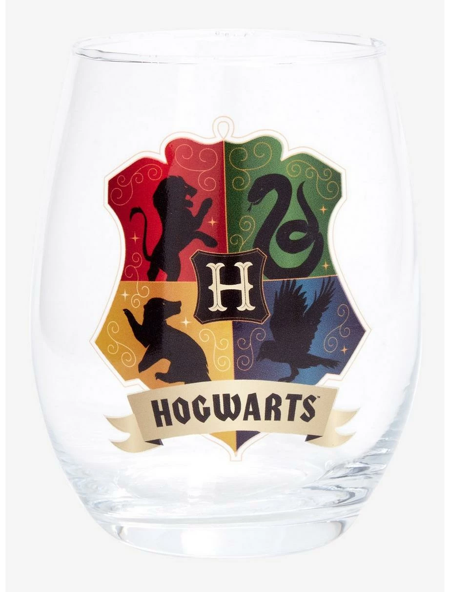 Raise a glass to the Boy Who Lived with this colorful Harry Potter wine glass! With a vibrant Hogwarts Crest on the front, this wine glass is the perfect addition to your magical drinkware collection.