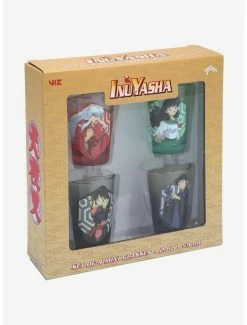 Share a toast to your favorite traveling anime companions with this mini glass set! Featuring character portraits of InuYasha, Sango, Kagome, and Miroku, this 4-piece set features an ombre design to match each character’s outfit color. A great drinkware set for you or the InuYasha fan in your life!