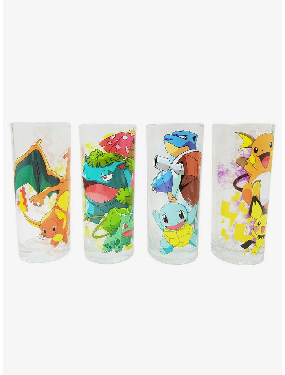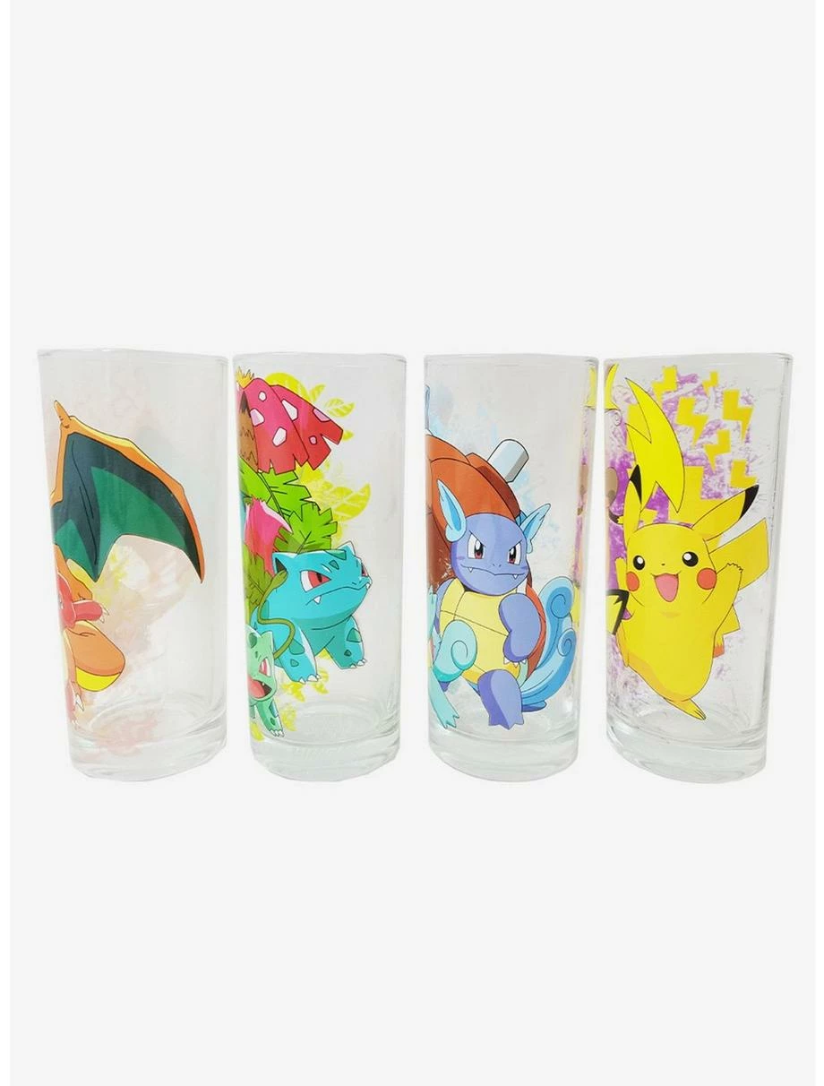 Catch the original starter pokémon in this four-piece glass set! Charmander, Bulbasaur, Squirtle, and Pikachu all appear (alongside their evolution chains) on these colorful glasses. Perfect for having a drink with your fellow Pokémon trainers!