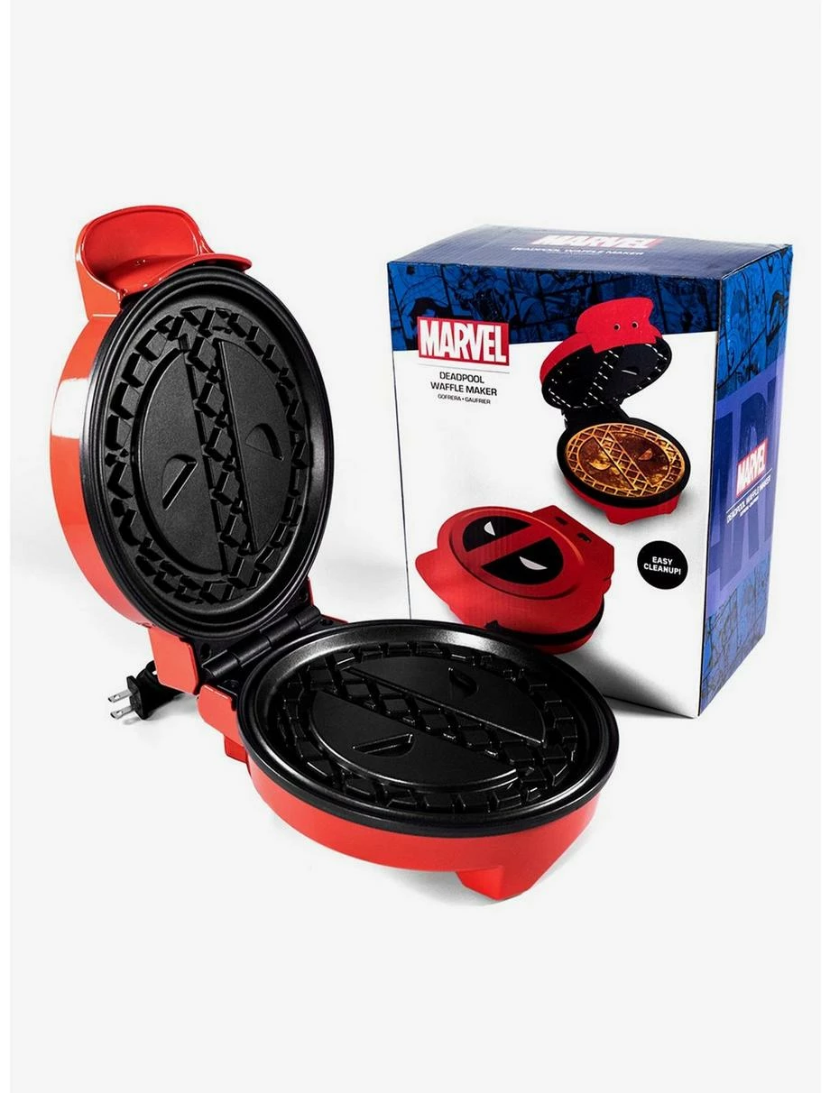 Nothing says “Good morning!” like fresh Deadpool waffles! Lending his signature style to this Marvel waffle maker, fans can enjoy delicious waffles shaped like Deadpool’s iconic logo. In fact, with the non-stick die-cast aluminum plates allowing for easy clean-up, making waffles are so easy that you can enjoy Deadpool waffles with every meal. Deadpool waffles for breakfast, Deadpool waffles for dinner, Deadpool waffles with Deadpool waffles…you can never have too many Deadpool waffles when you add this appliance to your kitchen!