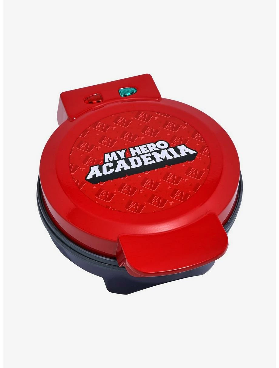 Fill up on a hearty meal before Hero training with this anime waffle maker! Inspired by the hit series, My Hero Academia, this waffle maker features the show logo as the graphic on the top, with a portrait of Deku as the interior non-stick die-cast plates so you can add a powerful punch to your waffles! Also features a cooking indicator light.