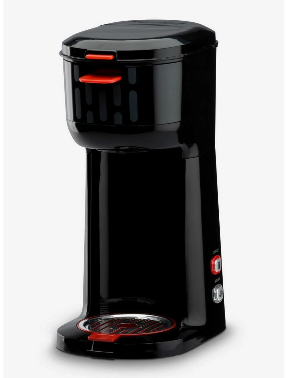 Wake Up. Rule the Galaxy. Repeat. Rapidly brew a fresh cup of coffee to start your day and take it with you in the included Darth Vader travel mug. The Star Wars dual brew is flexible and convenient. On the go? Just drop in a capsule for a quick cup of coffee. Or if you prefer a specific type of ground coffee, use the permanent filter basket to enjoy your favorite coffee, dark or light.